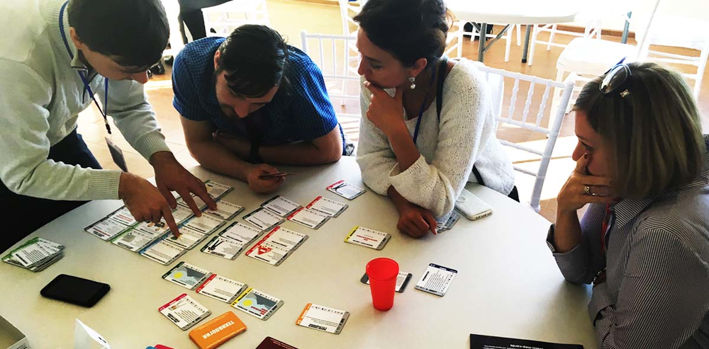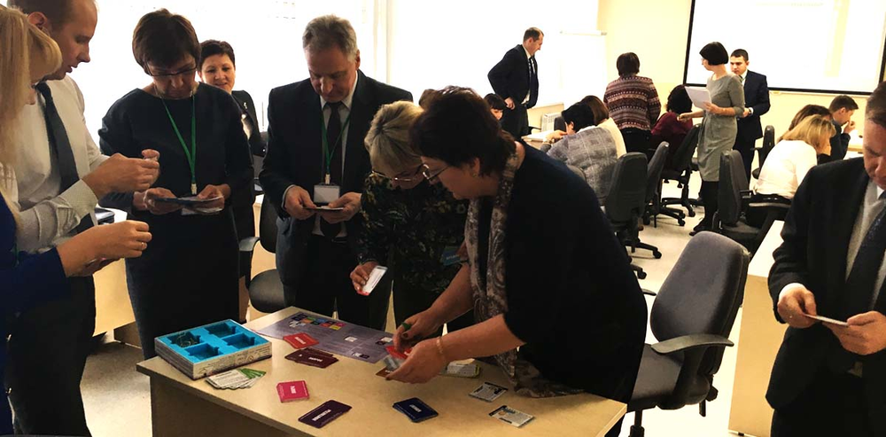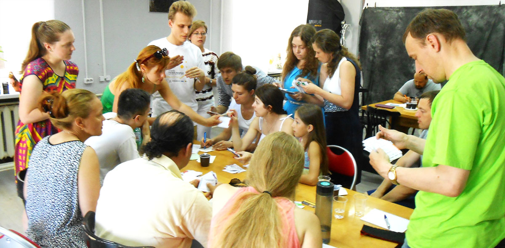 - Вторая часть тренинга – совместная кооперационная ролевая игра, в которой командам приходится взаимодействовать с другими командами для выполнения общей задачи. Во втором мероприятии нет проигравших и победивших – авторы лучших решений кооперируются в общие команды и дорабатывают свои презентации до идеала.