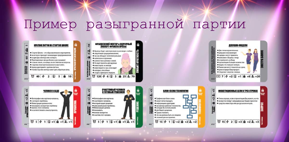 - Полноформатный двухдневный тренинг – в течение двух полных дней (15-16 часов) участники отрабатывают навыки построения структуры эффективной презентации и ее создание в течение двух игр – настольной и ролевой.