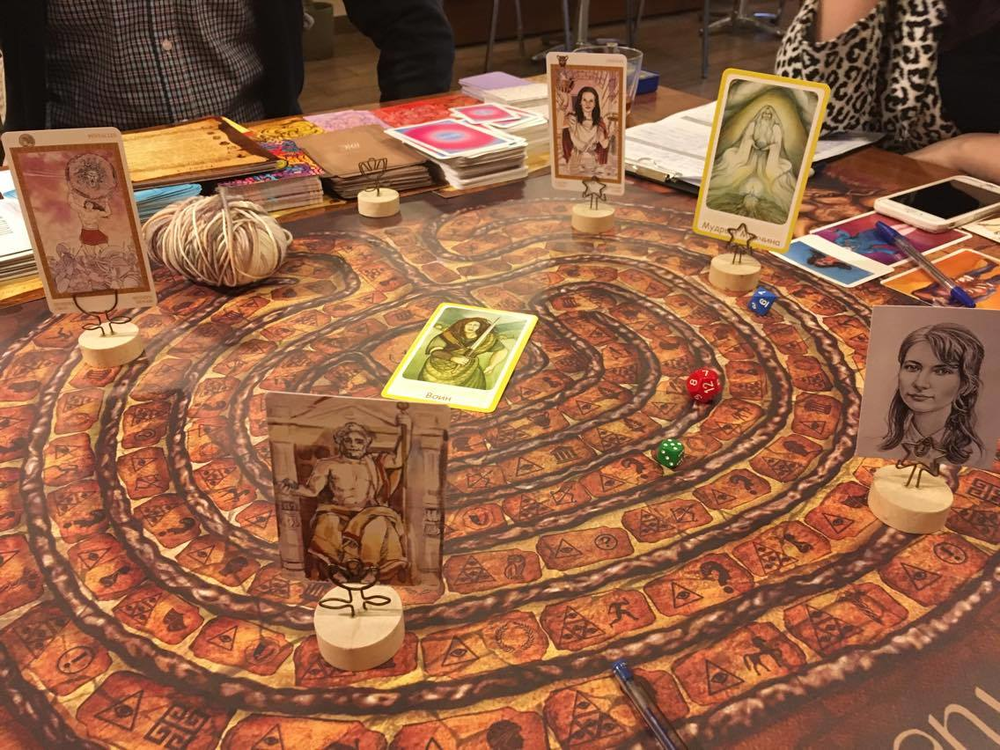 В лабиринте каждый шаг участники совершают одновременно, так как связаны они нитью Ариадны, а потому войдут и выйдут из лабиринта все в одно время. Много метафорических карт, много информации, много символов, а потому игра только для тех, кто на самом деле ищет ответ.